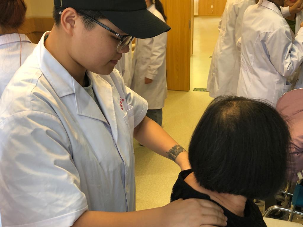 在上渡居家養(yǎng)老服務(wù)中心義診現(xiàn)場,黨員們各司其職,用專業(yè)的知識認(rèn)真地為前來咨詢的居民測量血壓、疾病科普及就醫(yī)指導(dǎo);結(jié)合詳細(xì)的問診、體格檢查及患者的檢查報告,用嫻熟的技能為就診患者提供針灸、拔罐、推拿等服務(wù)。參與此次活動的學(xué)生入黨積極分子積極熱情,在安全范圍內(nèi),充分發(fā)揮專業(yè)知識,體現(xiàn)人文關(guān)懷,為現(xiàn)場居民提供有效的志愿服務(wù)。