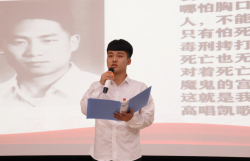 “一夜風(fēng)云變,上海大屠殺。爾琢拔刀起,血誓效討伐。革命不成功,此生不剃須。” 主播魏雨馨演繹著《王爾琢的“托孤書”》,觸動臺下觀眾的心靈,讓同學(xué)們感受到一個有血有肉、至情至性的共產(chǎn)黨人形象。