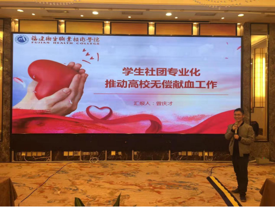 校團(tuán)委委員、醫(yī)學(xué)技術(shù)系團(tuán)總支曾慶才老師做我校獻(xiàn)血工作的匯報(bào)
