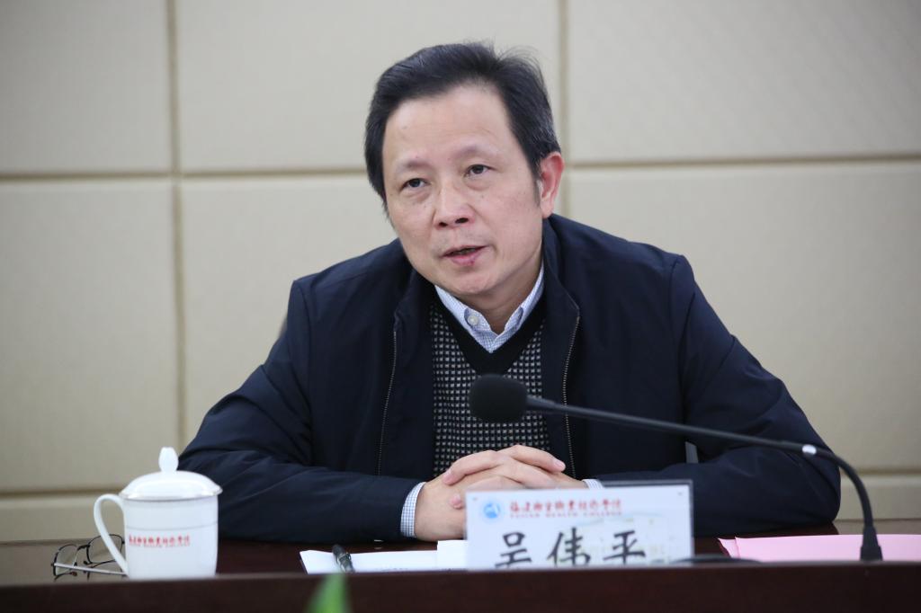 12月31日下午,省教育廳副廳長(zhǎng)吳偉平,體育衛(wèi)生藝術(shù)教育與語(yǔ)言文字處處長(zhǎng)蘇貽堆、調(diào)研員彭杰一行3人到我??疾煺{(diào)研指導(dǎo)工作,全體校領(lǐng)導(dǎo)以及財(cái)務(wù)處、后勤管理處、繼續(xù)教育中心、醫(yī)學(xué)技術(shù)系、管理系和門診部負(fù)責(zé)人參加了座談會(huì)。座談會(huì)由校黨委書記曾武祈主持。