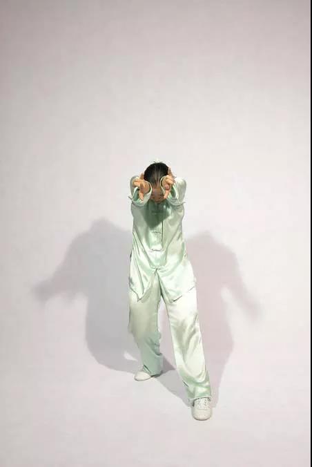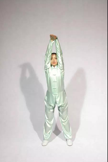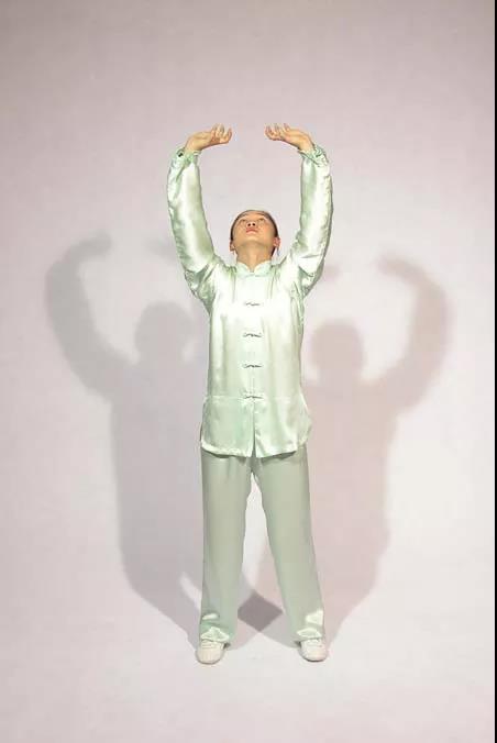 沉肩松肘腕上提;起吸落呼百會(huì)領(lǐng)。