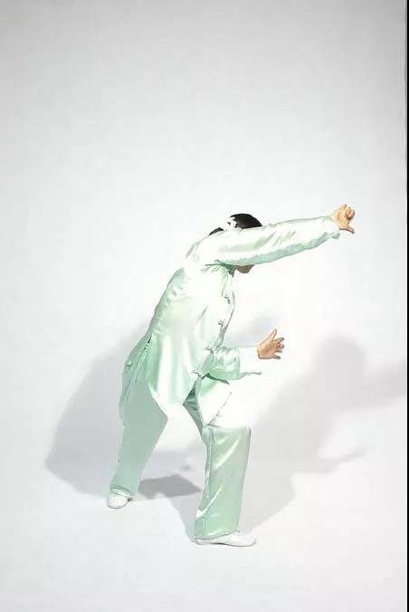 空拳前伸成弓步;重心后移成弓背;