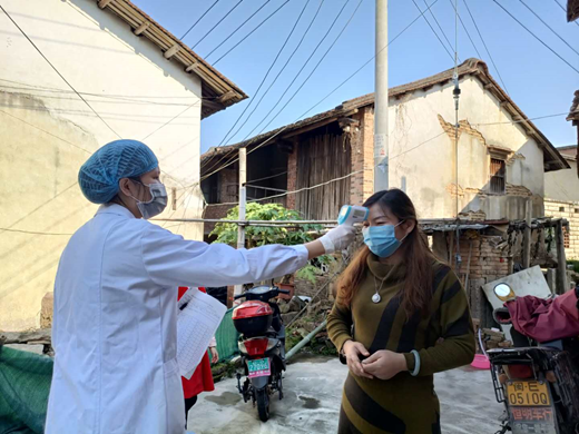 預(yù)防班林婷參與上門面訪、測量體溫工作