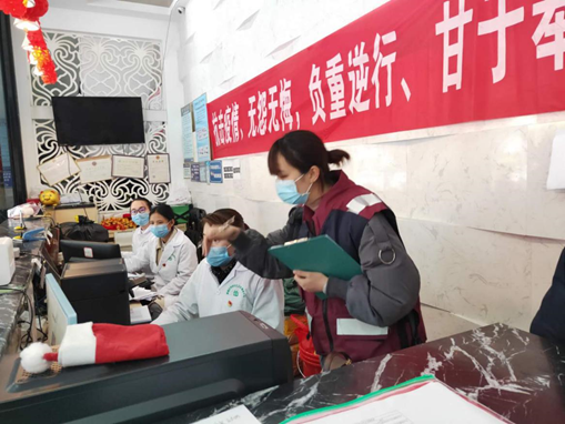 預(yù)防班周銀華(左二)參與外來人員復工體溫檢測工作