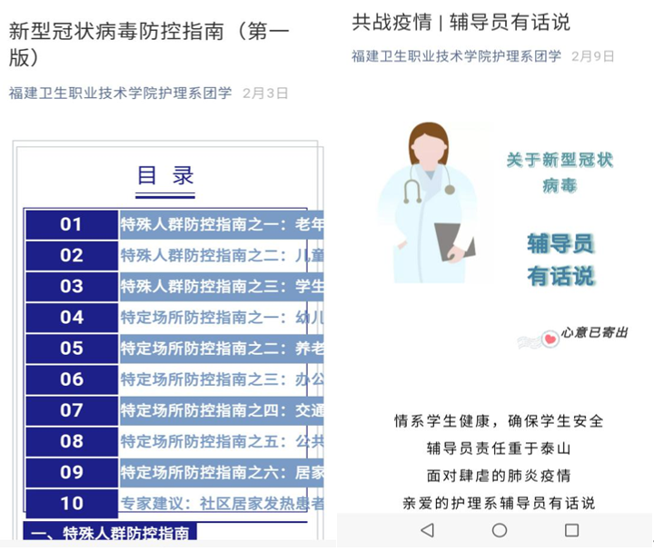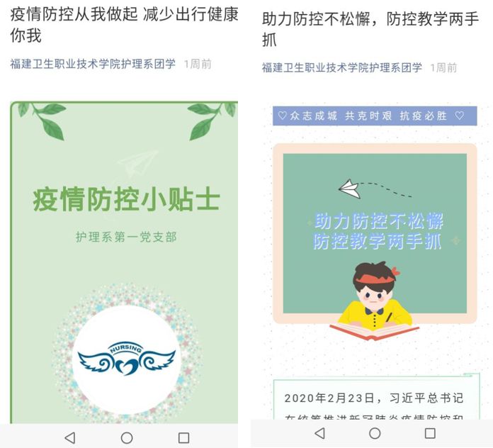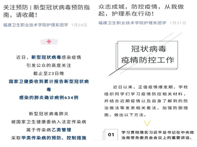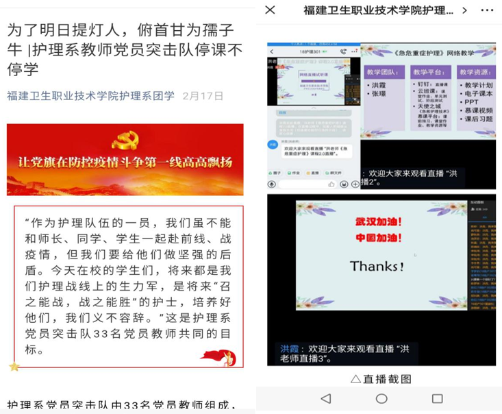 在努力做好教學(xué)工作的同時(shí),各個(gè)專(zhuān)業(yè)的教師發(fā)揮集體智慧,團(tuán)結(jié)一心,共渡難關(guān),實(shí)現(xiàn)防疫、教學(xué)兩不誤。護(hù)理系黨員教師結(jié)合專(zhuān)業(yè)方向,制作微黨課視頻和疫情防控專(zhuān)業(yè)知識(shí)的解讀視頻,開(kāi)展黨的知識(shí)及疫情防控知識(shí)的宣教。