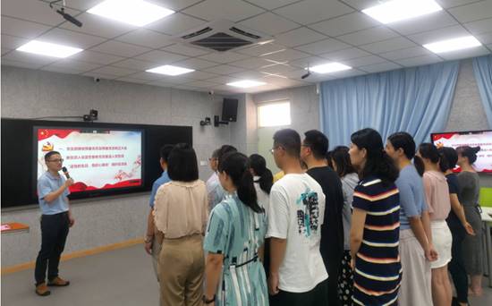 國際歌聲聲在耳,入黨誓言句句在心。全體黨員唱響《國際歌》,重溫入黨誓詞,40位新黨員同步進(jìn)行線上入黨宣誓。