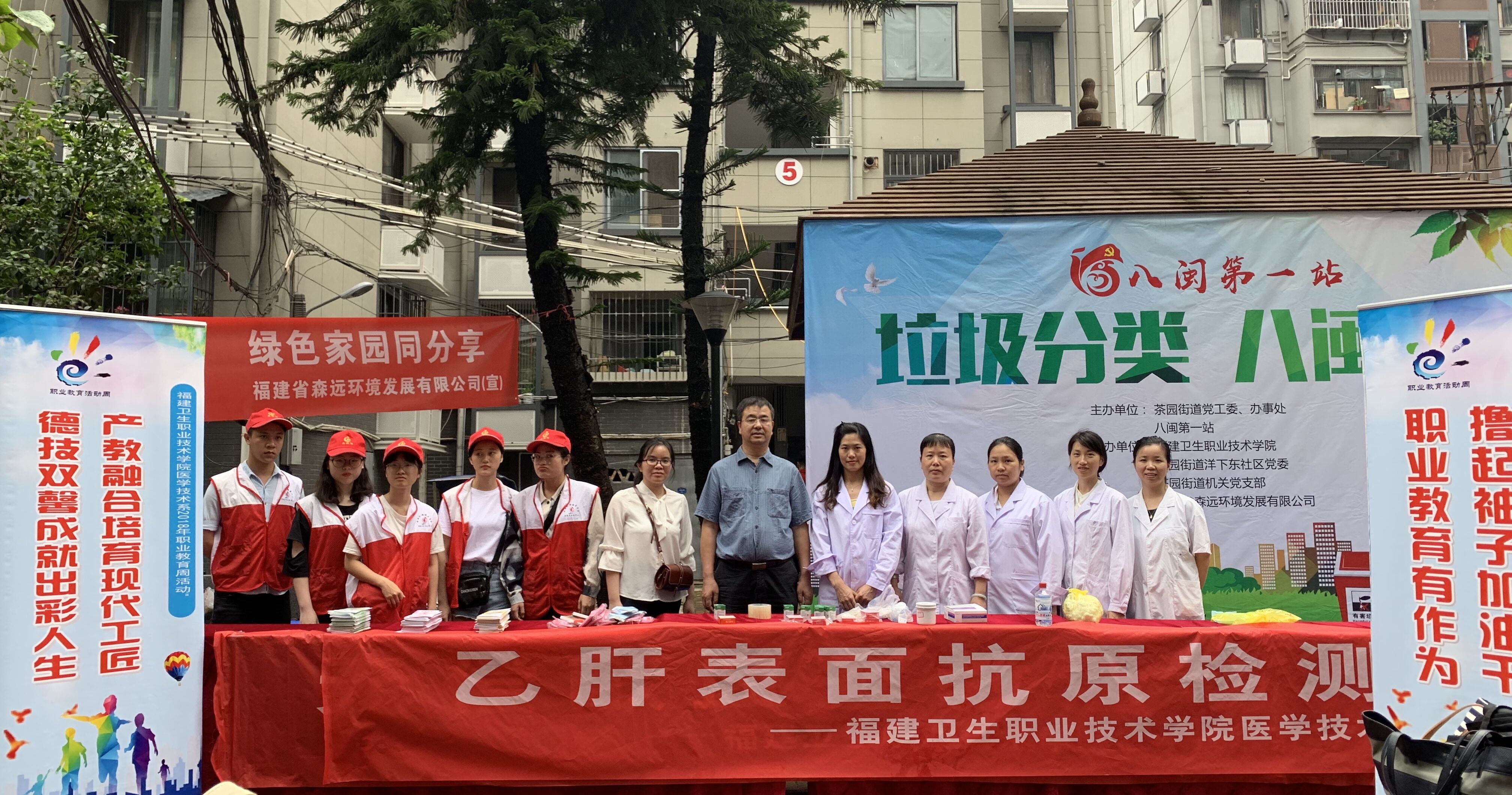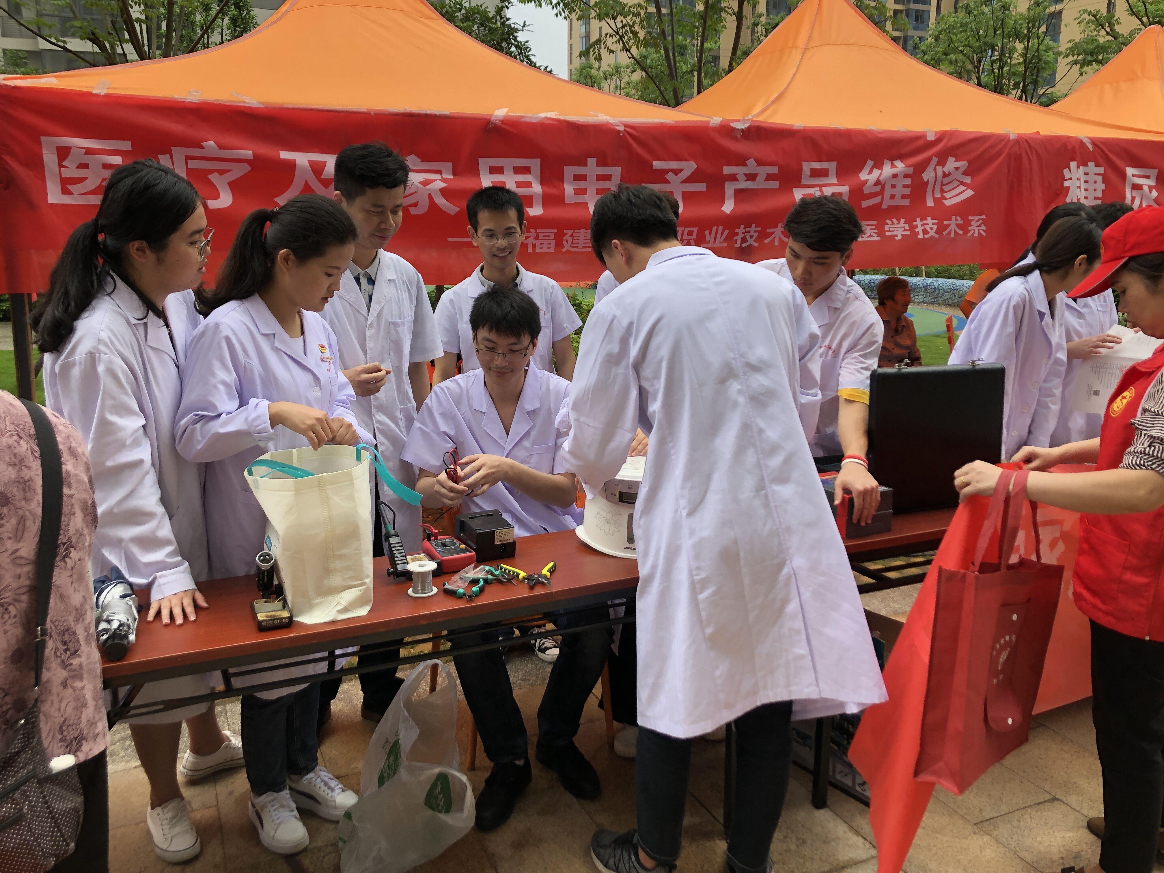 為積極響應(yīng)2019年全國(guó)職業(yè)教育活動(dòng)周的號(hào)召,充分展示我院辦學(xué)特色和成果,發(fā)揮我院醫(yī)學(xué)職業(yè)技能優(yōu)勢(shì),推動(dòng)“兩學(xué)一做”學(xué)習(xí)教育活動(dòng)常態(tài)化制度化,充分發(fā)揮基層黨組織戰(zhàn)斗堡壘作用和黨員的先鋒模范作用,以“迎祖國(guó)七十華誕 展職教時(shí)代風(fēng)采”為主題,醫(yī)學(xué)技術(shù)系黨總支組織25位專業(yè)教師(其中,教師黨員19名)帶領(lǐng)48名學(xué)生(其中,學(xué)生入黨積極分子39名)于2019年5月16日前往醫(yī)技系共建合作單位福州市晉安區(qū)茶園街道所屬的洋下東社區(qū)洋下花園小區(qū)和東浦社區(qū)開(kāi)展6項(xiàng)職教活動(dòng)。