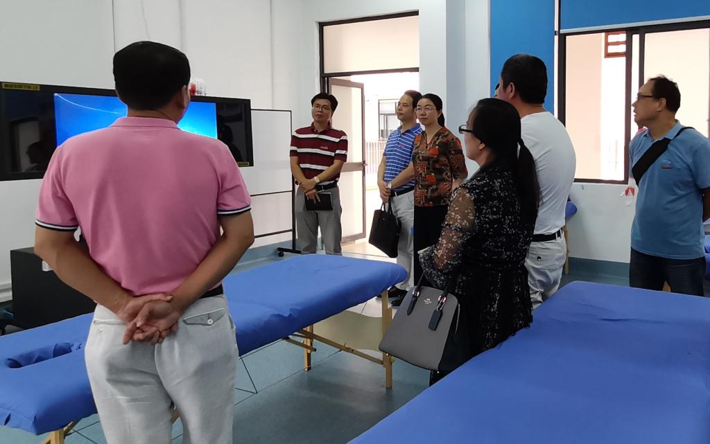 座談會后,來訪一行在副院長黃銘珊及臨床醫(yī)學系相關(guān)人員的陪同下參觀了臨床醫(yī)學系實訓中心。