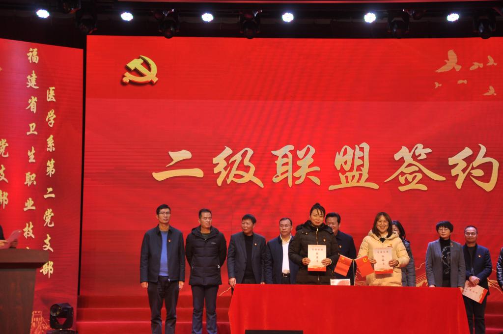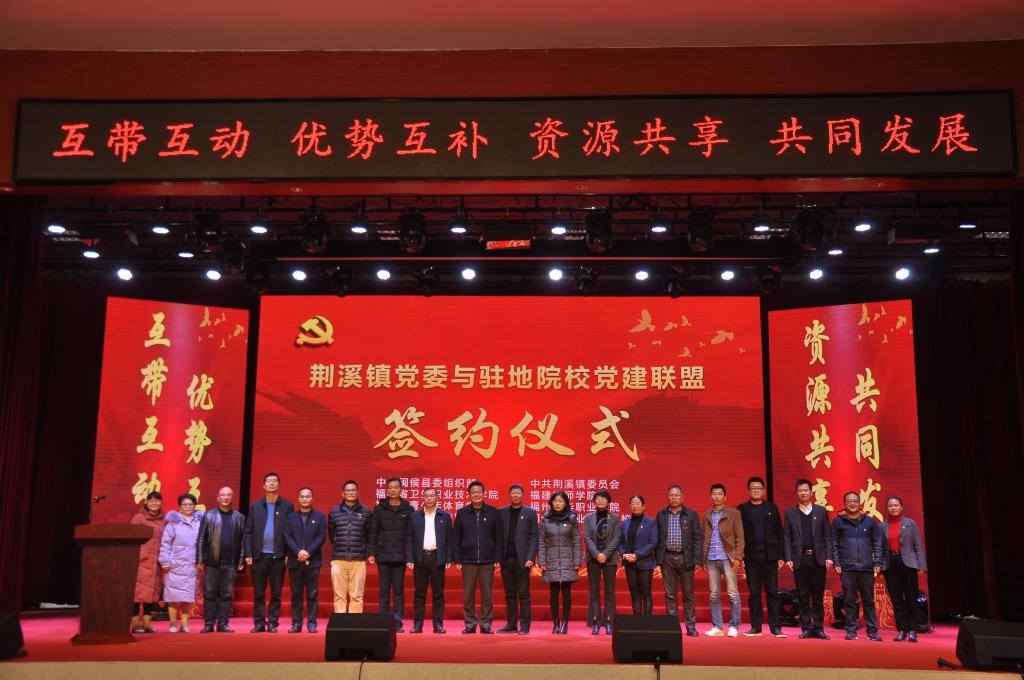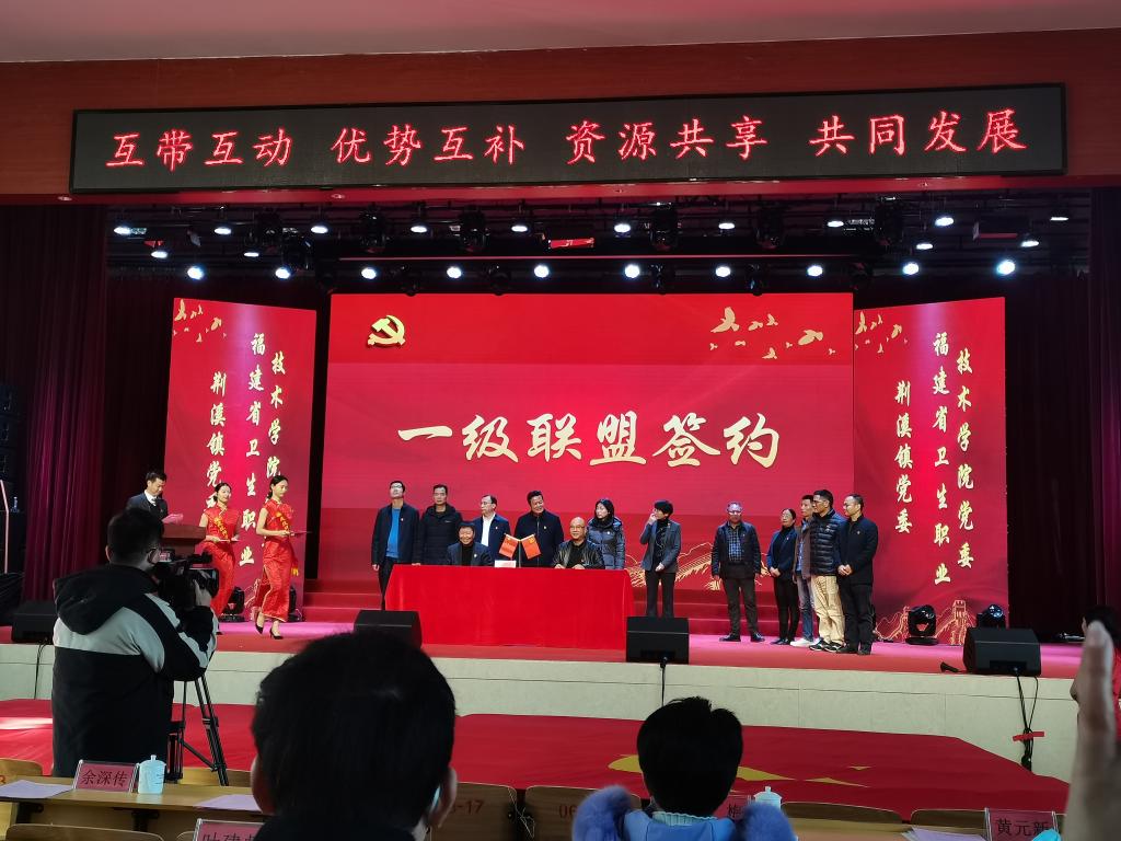 簽約儀式上,我校與荊溪鎮(zhèn)黨委簽訂一級黨建聯(lián)盟協(xié)議,醫(yī)學(xué)系第一、二黨支部分別與閩侯縣荊溪鎮(zhèn)衛(wèi)生院黨支部、亞鷹建筑科技集團(tuán)黨支部簽訂二級黨建聯(lián)盟協(xié)議。