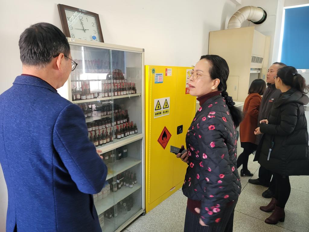 鄭翠紅一行先后實(shí)地察看了藥學(xué)院、護(hù)理學(xué)院、醫(yī)學(xué)技術(shù)系的教學(xué)實(shí)訓(xùn)室。本次檢查的內(nèi)容包括實(shí)訓(xùn)室的設(shè)備運(yùn)行情況、消防安全、用電安全、通風(fēng)情況以及環(huán)境衛(wèi)生等有關(guān)安全細(xì)節(jié),重點(diǎn)對(duì)特殊儀器設(shè)備運(yùn)行安全、?;芳耙兹家妆穬?chǔ)存、實(shí)訓(xùn)耗材購(gòu)置管理及廢液中轉(zhuǎn)回收等情況進(jìn)行了檢查。