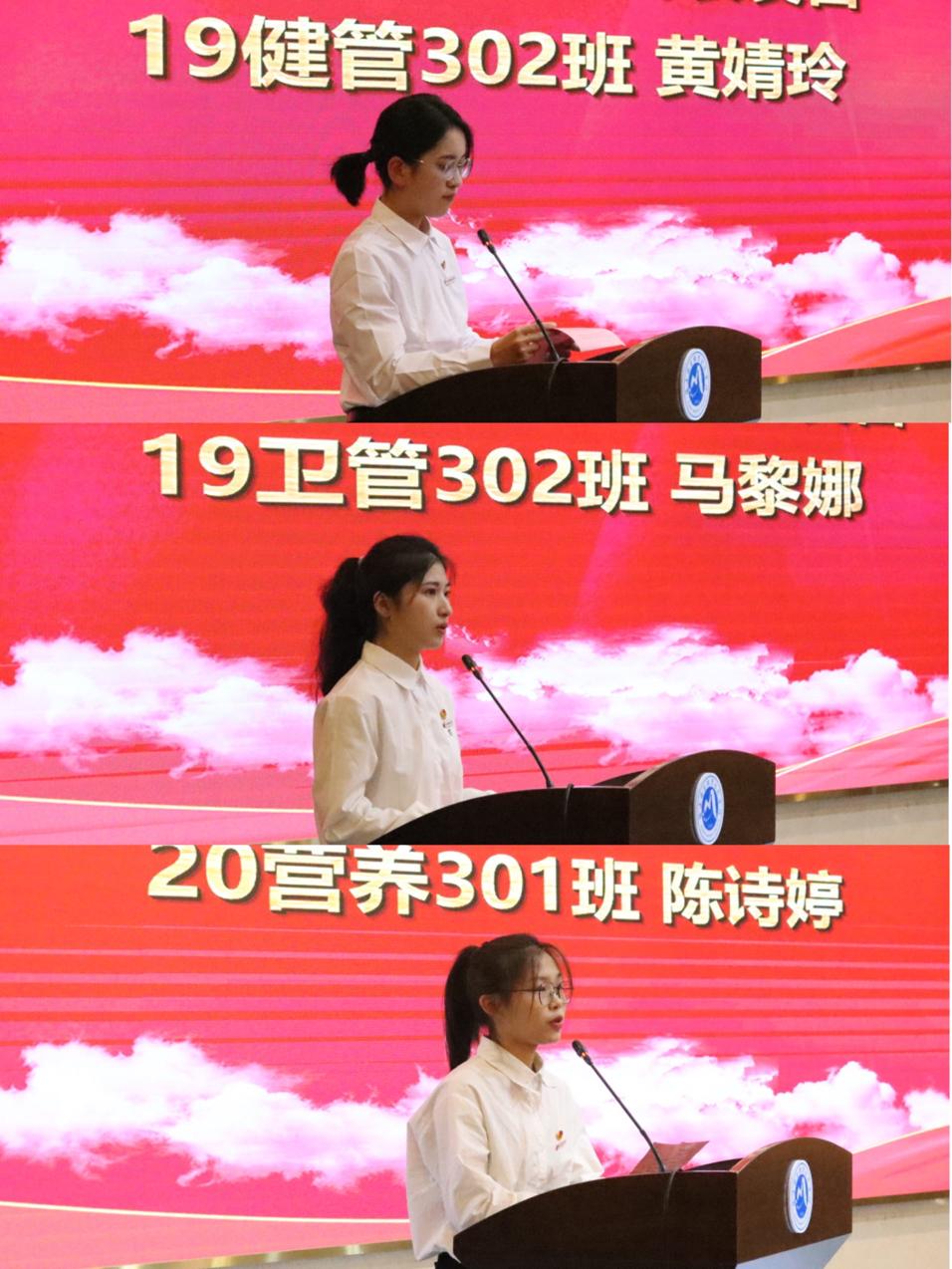 樹典型,激勵廣大學子勤奮學習筑夢中華。系主任莊海林宣讀了表彰決定,參會領導和各專業(yè)帶頭人、教研室主任為獲獎學生代表頒獎。黃婧玲、馬黎娜、陳詩婷3名同學作為獲獎學生代表發(fā)言,匯報個人事跡,交流學習生活。