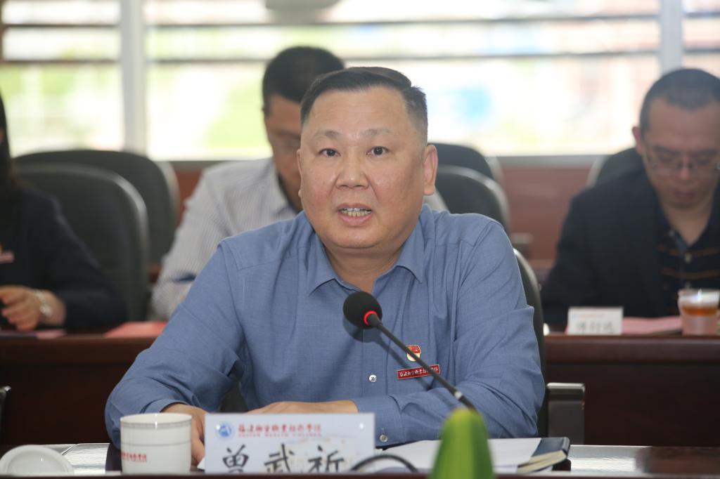 曾武祈在匯報中指出,黨史學習教育開展以來,黨委高度重視,科學籌劃、周密部署、有效落實,扎實推進黨史學習教育取得初步成效。一是聚焦主題,迅速部署。組建黨史學習教育領導小組,抽調(diào)精干人員成立領導小組辦公室,向二級黨總支(直屬黨支部)派出指導小組。二是對標對表,全面推進。對照要求制定方案,列出任務清單,明確責任主體和時限要求,增強學習的針對性和時效性。三是以上率下,學深悟透。認真制定學習計劃,黨委班子成員帶頭學習談心得。四是分類培訓,強化效果。采用“集中學習”+“個人自學”相配合,依托網(wǎng)絡平臺,制定校內(nèi)各級各類專題讀書班計劃。五是加強宣傳,營造氛圍。黨委領導班子成員帶頭,同時發(fā)揮專職思政教師、黨務干部、讀書社學生的優(yōu)勢,面向師生做專題宣講,在官網(wǎng)、微信公眾號開設學習專欄,報道學習動態(tài),線上線下齊發(fā)力,共建黨史宣傳陣地。六是落到基層,踐之于行。完善領導干部聯(lián)系師生制度,學校黨政班子下沉一線調(diào)研,切實為師生群眾辦實事解難題,積極到社區(qū)、小學等基層單位開展科普宣教和志愿服務。