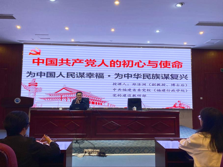 鄭濟(jì)洲作《中國(guó)共產(chǎn)黨的初心和使命》專(zhuān)題講座。他從“苦難與輝煌、立場(chǎng)與思想、夢(mèng)想與實(shí)踐”三個(gè)方面闡述了中國(guó)共產(chǎn)黨“民族復(fù)興的歷史使命、服務(wù)人民的永恒初心及偉大斗爭(zhēng)的時(shí)代精神”;從中華民族五千年的文明歷史到中國(guó)共產(chǎn)黨的崛起、發(fā)展,強(qiáng)調(diào)中國(guó)共產(chǎn)黨人的初心和使命,就是為中國(guó)人民謀幸福,為中華民族謀復(fù)興。