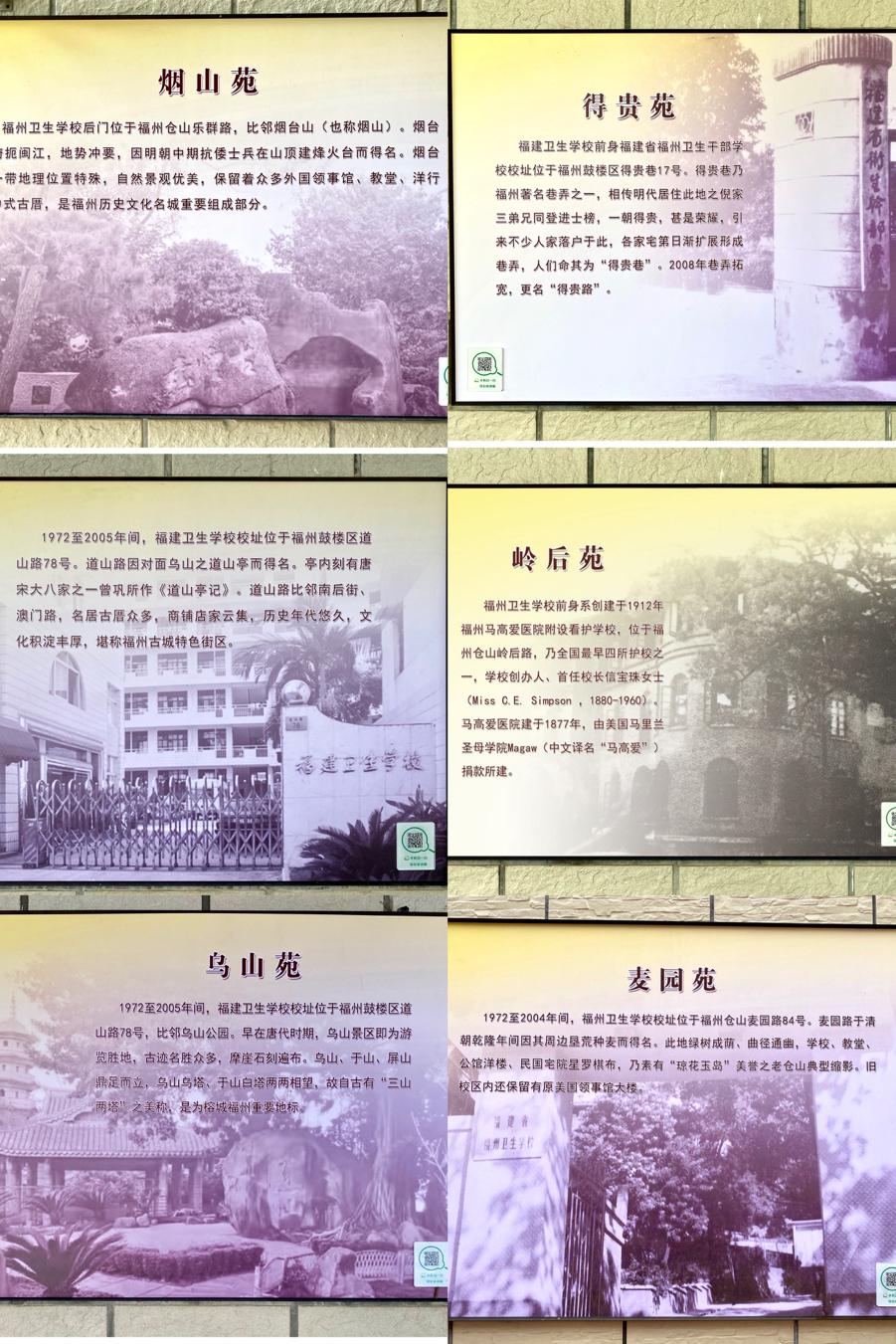 以福建衛(wèi)生學(xué)校和福州衛(wèi)生學(xué)校曾經(jīng)的“校址”(地名)作為每個(gè)“苑”的定語(yǔ),分別是: