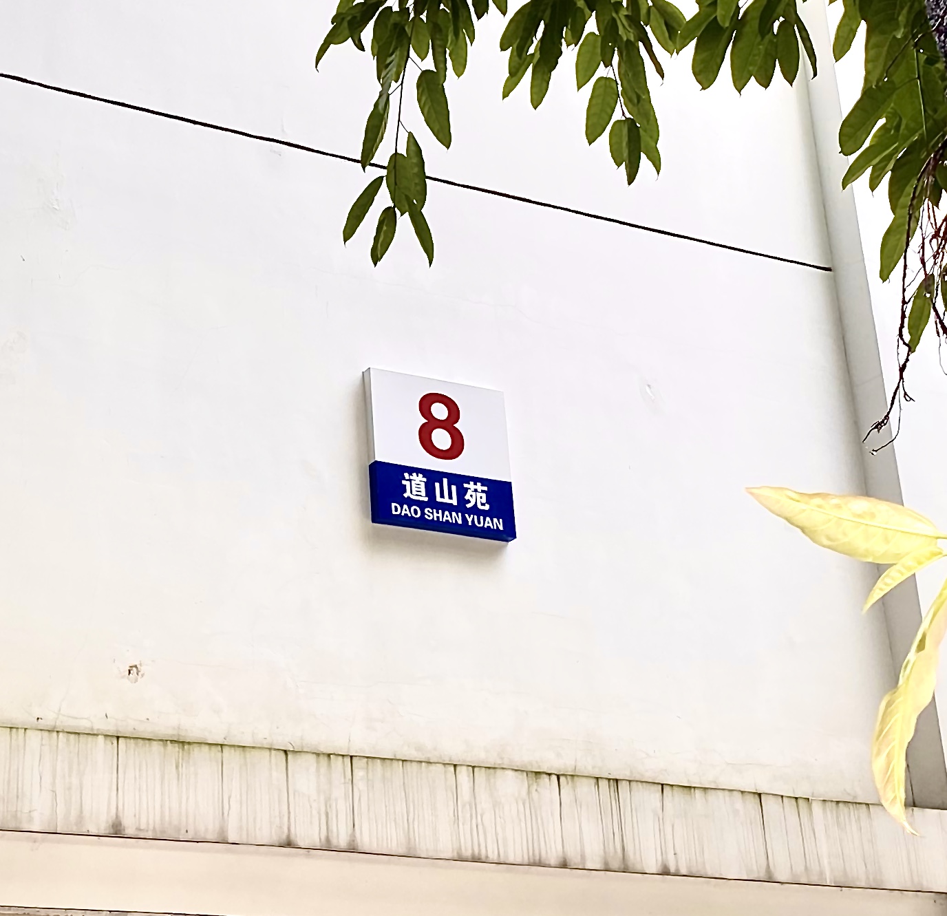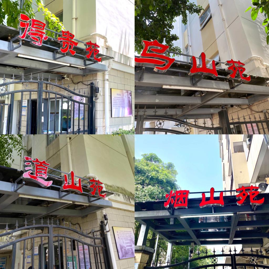 每座樓兩側(cè)面掛有樓名樓號(hào)牌。