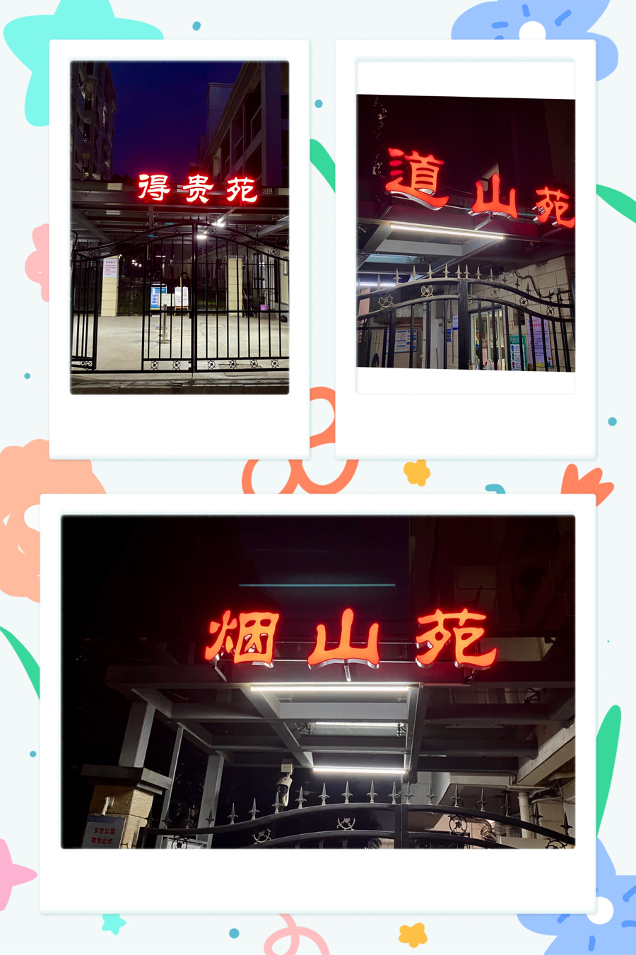 苑門(mén)上方的LED紅色發(fā)光字,在夜色里顯得格外靚麗而溫馨。
