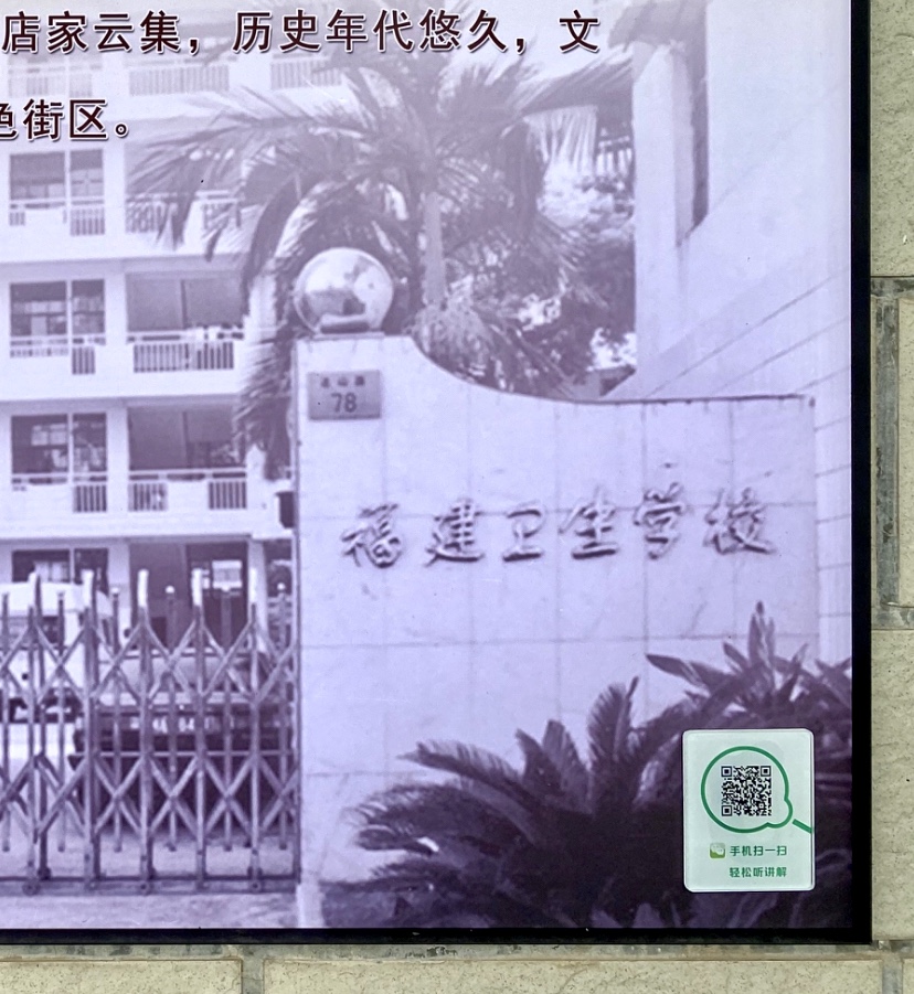 在6塊圖文牌匾上還貼有二維碼,應(yīng)用現(xiàn)代信息技術(shù)建成自助語(yǔ)音講解系統(tǒng),用手機(jī)微信掃一掃,即可清晰傾聽(tīng)與學(xué)生公寓樓命名相關(guān)的校史介紹。