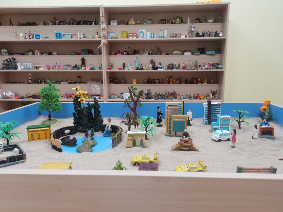 沙盤游戲又稱為箱庭療法,以心理分析無意識理論為基礎,由榮格分析心理學家多拉·卡爾夫正式創(chuàng)立。在咨詢師的陪伴下,來訪者可以自由地在沙盤內(nèi)擺放沙具,通過這種形式來呈現(xiàn)自己的潛意識世界,可以使來訪者的“自我治愈力”得以發(fā)揮,在沙子中找回孩童時的樂趣。目前心理沙盤室共有個體沙盤2個,團體沙盤1個,2000余件沙具。