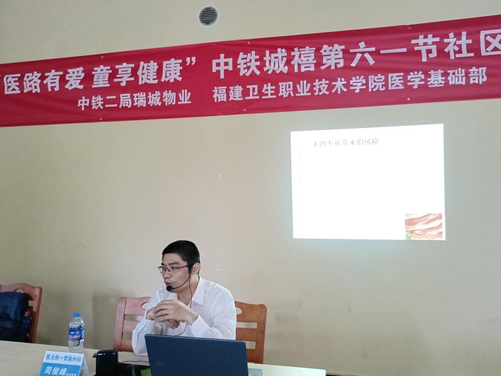 國(guó)際“六一”兒童節(jié)前夕,為踐行健康中國(guó)行動(dòng),關(guān)愛(ài)兒童健康,2021年5月29日上午,醫(yī)學(xué)基礎(chǔ)部聯(lián)合護(hù)理學(xué)院、福建醫(yī)科大學(xué)附屬第一醫(yī)院共同在閩侯荊溪社區(qū)中鐵城舉辦了“醫(yī)路有愛(ài),童享健康”健康知識(shí)進(jìn)社區(qū)活動(dòng),該活動(dòng)也是2021年我校科技周與職業(yè)教育周系列活動(dòng)之一。