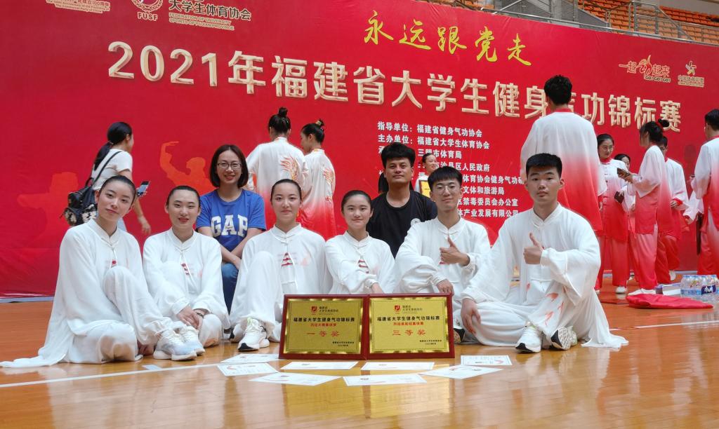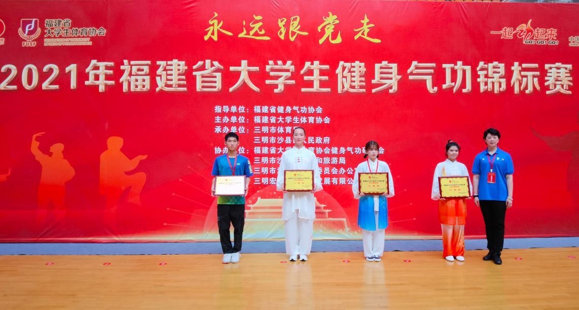 2021年6月4日至7日,慶祝中國共產(chǎn)黨成立100周年2021年福建省大學(xué)生健身氣功錦標(biāo)賽在沙縣區(qū)人民體育公園舉行。我校健身氣功隊的6名隊員獲得兩金、兩銀、兩銅,一項第五名的好成績。