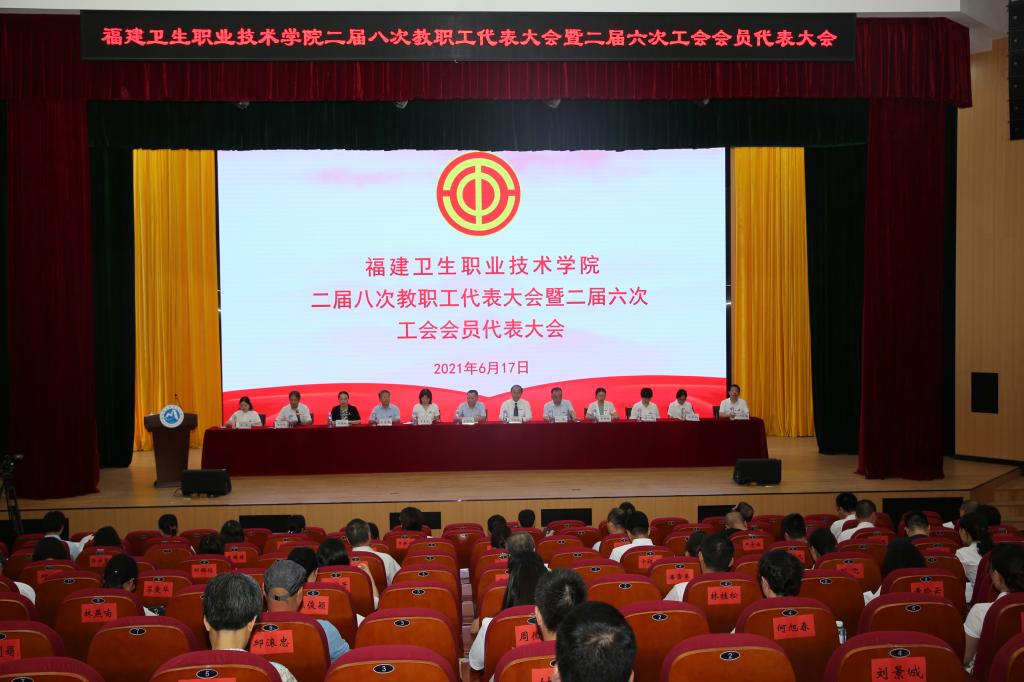 我校二屆八次教職工代表大會(huì)暨二屆六次工會(huì)會(huì)員代表大會(huì)于2021年6月17日召開(kāi)。大會(huì)聽(tīng)取和審議了《學(xué)校工作報(bào)告》《學(xué)校工會(huì)工作報(bào)告》《學(xué)校2020年財(cái)務(wù)決算與2021年財(cái)務(wù)預(yù)算報(bào)告》,審議了《福建衛(wèi)生職業(yè)技術(shù)學(xué)院“十四五”事業(yè)發(fā)展規(guī)劃》《學(xué)校教代會(huì)提案工作報(bào)告》《學(xué)校工會(huì)經(jīng)費(fèi)2020年度審查報(bào)告》。