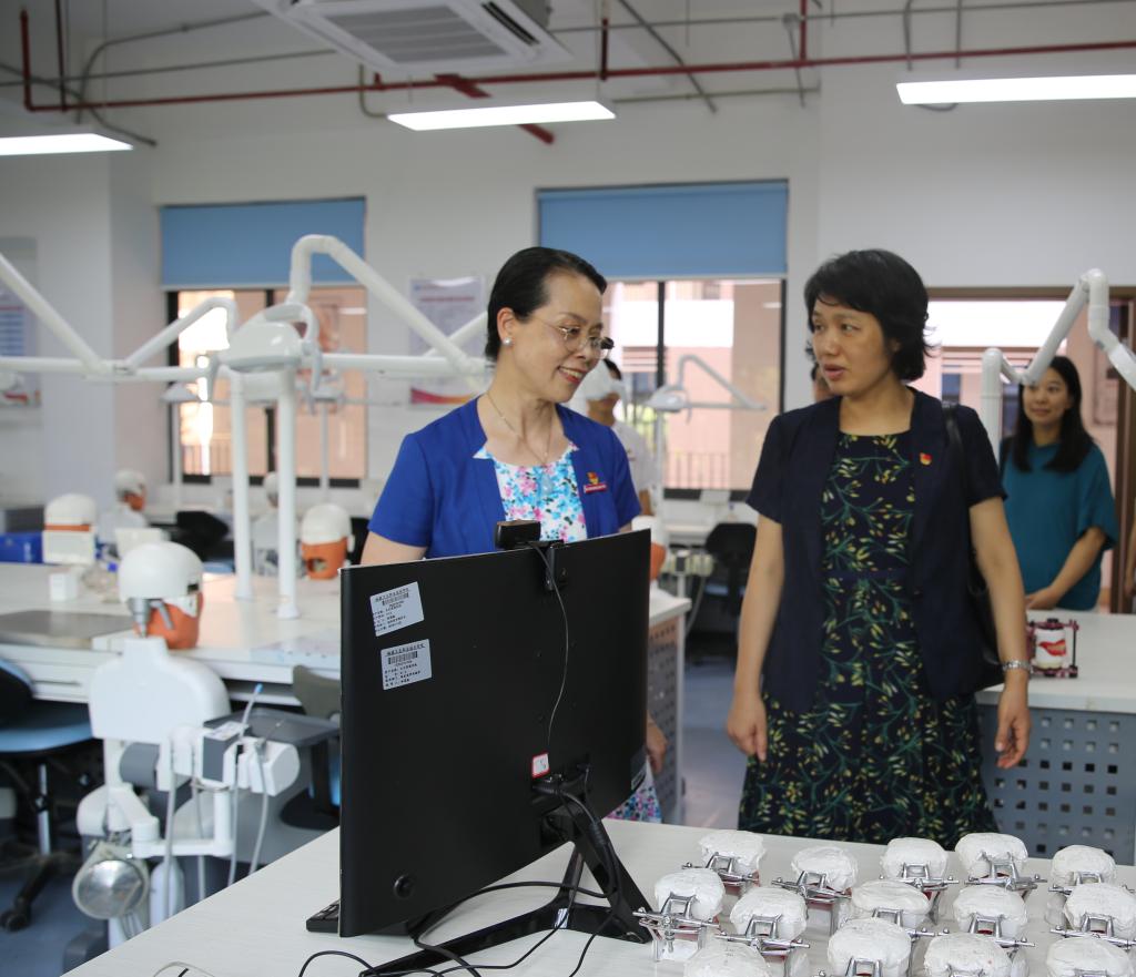 黃玲一行實地參觀了學校校史館、心理健康教育中心、紅十字生命教育體驗學堂、藥學院中藥炮制中心、門診部暨臨床技能教學中心等,深入了解我校辦學成果、人才培養(yǎng)和實訓基地建設(shè)情況。