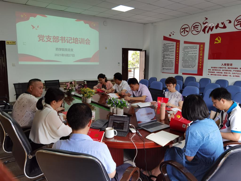 為深入貫徹落實學?!痘鶎狱h組織“學習·診斷·建設(shè)”行動的工作方案》文件要求,切實提升基層黨務(wù)干部政治素養(yǎng)和黨建業(yè)務(wù)能力,藥學院黨總支于2021年3月--6月組織開展黨支部書記輪訓班,藥學院黨總支委員、各黨支部書記參加培訓。