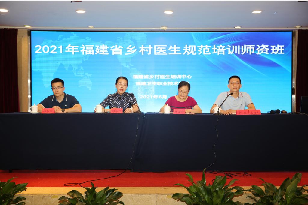 為加強我省鄉(xiāng)村醫(yī)生師資隊伍建設(shè),提高培訓(xùn)教學(xué)質(zhì)量,按照福建省衛(wèi)生健康委員會(下簡稱福建省衛(wèi)健委)工作要求,福建省鄉(xiāng)村醫(yī)生培訓(xùn)中心(掛靠福建衛(wèi)生職業(yè)技術(shù)學(xué)院)精心籌備,6月23日上午在福州世紀金源大飯店召開2021年福建省鄉(xiāng)村醫(yī)生培訓(xùn)師資班開班儀式。福建省衛(wèi)健委科教處二級調(diào)研員葉麗君,福建衛(wèi)生職業(yè)技術(shù)學(xué)院副院長鄭翠紅,福建省立醫(yī)院老年醫(yī)學(xué)科主任林春錦以及各鄉(xiāng)村醫(yī)生培訓(xùn)中心、培訓(xùn)點領(lǐng)導(dǎo)、骨干教師共163人參加開班儀式,開班儀式由繼續(xù)教育學(xué)院副院長何烜主持。