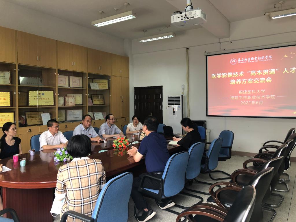 6月4日下午,福建醫(yī)科大學醫(yī)學影像學系曹代榮副主任、李躍明、李堅、劉穎、洪珊妮、曾崢一行6人來我校,就醫(yī)學影像技術專業(yè)“高本貫通”人才培養(yǎng)方案開展調(diào)研交流。院長許能鋒、教務處處長朱扶蓉、醫(yī)學技術系黨總支書記陳俊穎、系主任翁繩和、系副主任魏碧娜等參加了交流活動。