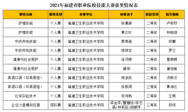 喜報(bào)|我校學(xué)生在2021年福建省職業(yè)院校技能大賽中喜獲佳績(jī)