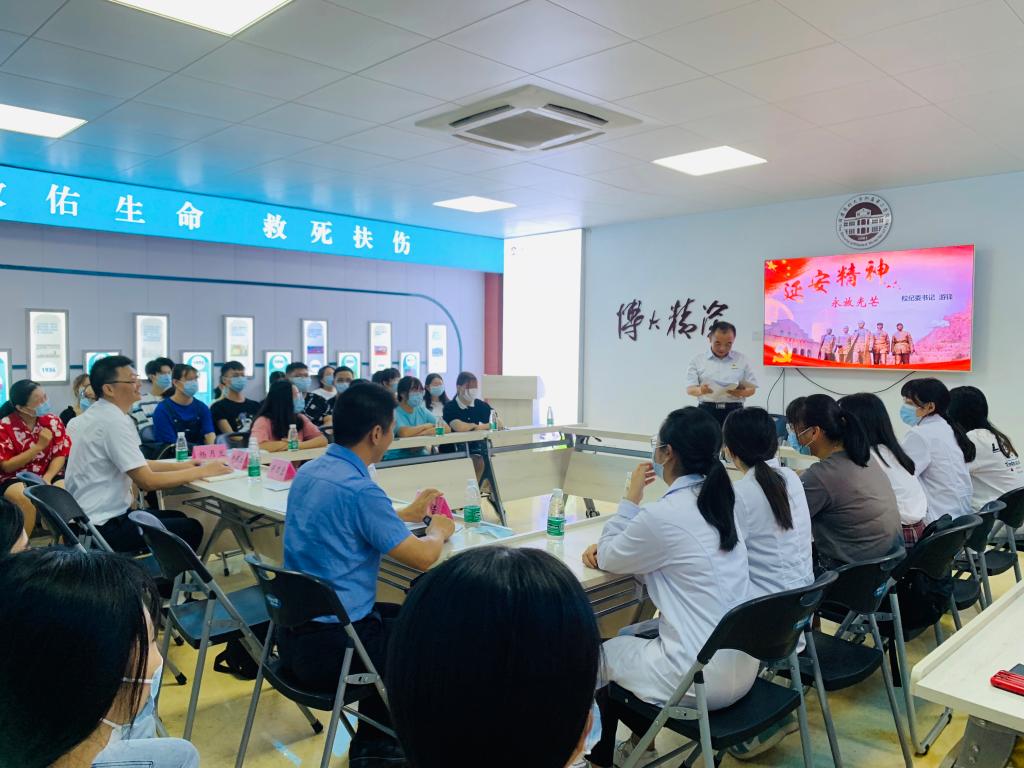 在福建醫(yī)科大學(xué)附屬第二醫(yī)院,游鋒為在院實(shí)習(xí)的45位學(xué)生上了一堂生動(dòng)嚴(yán)肅的專(zhuān)題黨課《延安精神,永放光芒》,重溫百年黨史,同學(xué)們表示,今后將向先輩們學(xué)習(xí),要把個(gè)人理想追求、職業(yè)發(fā)展融入到黨和國(guó)家事業(yè)之中,勇?lián)?dāng)、勤奉獻(xiàn),用實(shí)際行動(dòng)為家鄉(xiāng)建設(shè)發(fā)展、為人民群眾辦實(shí)事、解難題。