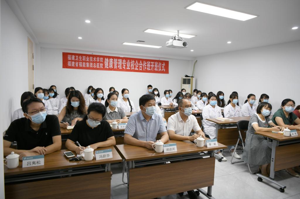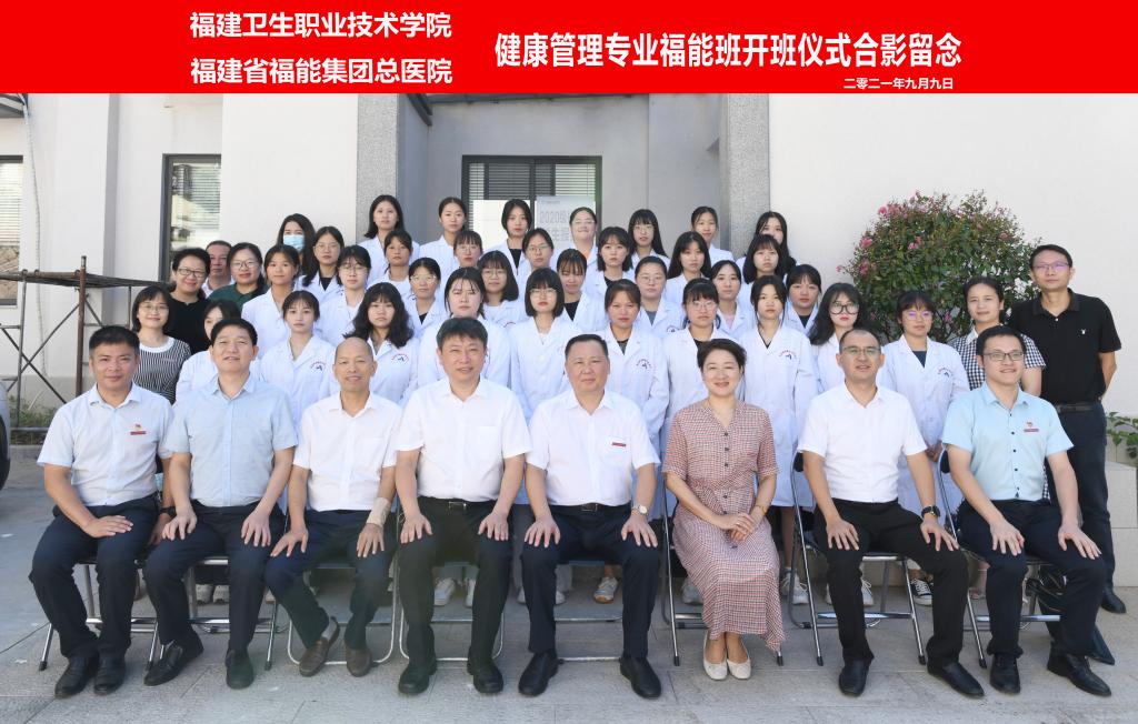 2021年9月9日,在第37個教師節(jié)來臨之際,福建衛(wèi)生職業(yè)技術(shù)學(xué)院健康管理專業(yè)福能班開班儀式在福建省福能集團總醫(yī)院舉行。我校黨委書記曾武祈、醫(yī)院黨總支書記、院長陳斌,副院長羅德壽、李斌、闕啟河,校院相關(guān)職能處室、院系負責(zé)人和專業(yè)帶頭人、輔導(dǎo)員,以及福能班全體同學(xué)參加,開班儀式由醫(yī)院副院長羅德壽主持。曾武祈和陳斌分別代表校院雙方致辭,學(xué)生杜婧瑩代表全體福能班學(xué)生做開班發(fā)言。會后,與會領(lǐng)導(dǎo)與首屆健康管理專業(yè)福能班合影留念。