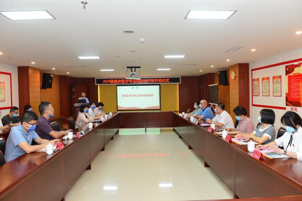 9月9日上午,我校與福建省老年醫(yī)院聯(lián)合舉辦首屆2020級臨床醫(yī)學校院合作班開班儀式。我校黨委書記曾武祈帶隊教務處、實習實訓中心、醫(yī)學系等部門負責人及相關人員一行6人與省老年醫(yī)院黨委書記張峻芳、紀委書記陳婷及各有關科室主任、醫(yī)生以及20級臨床醫(yī)學302班30名同學共同參加了開班儀式。儀式由老年醫(yī)院科教科主任李鵬虹主持。