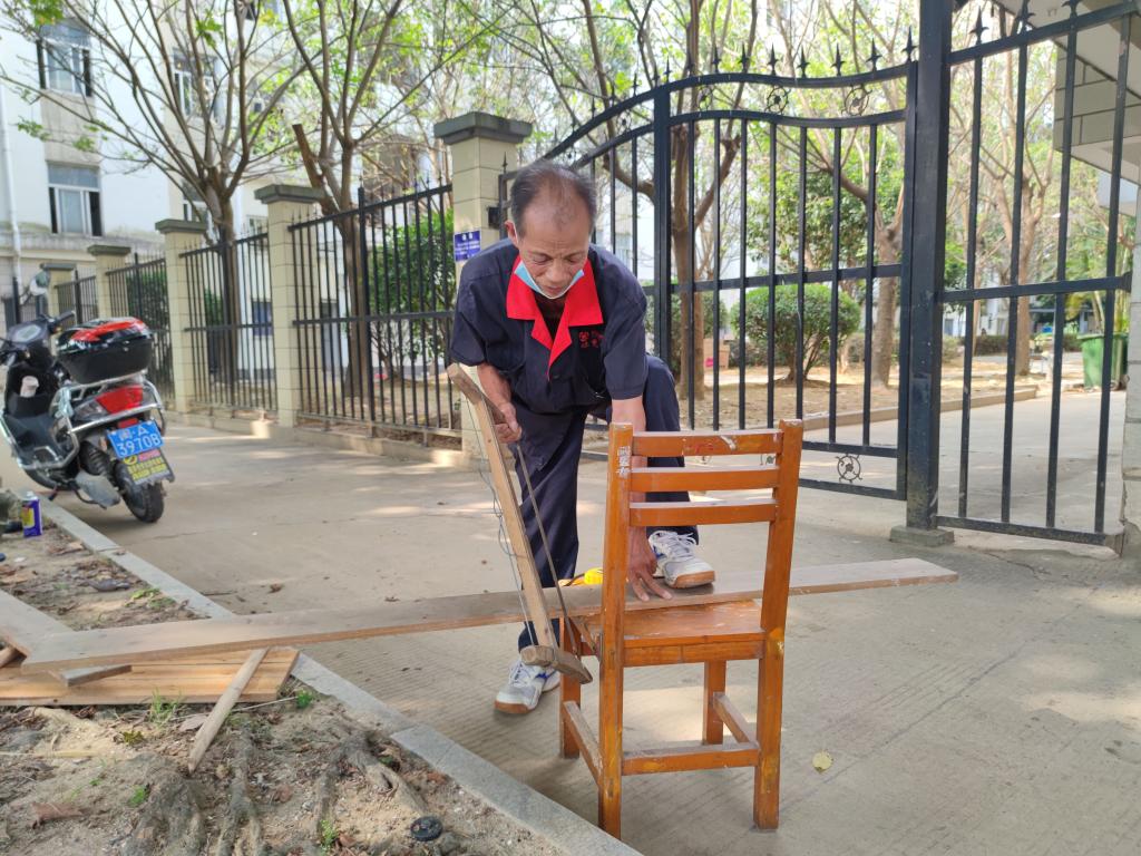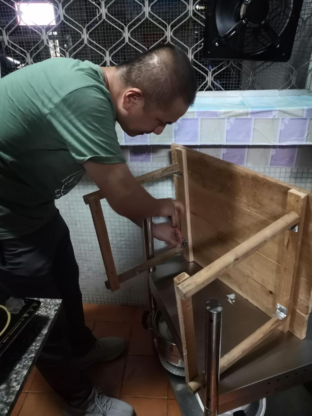 得悉王林慧放置使用電磁爐的桌子為金屬制品,容易導致爆炸等安全問題,且其購置合適的桌子存在一定困難,后勤管理處木工洪師傅立即利用業(yè)余時間免費為她們制作一張木質桌子以代替原來的金屬桌子。