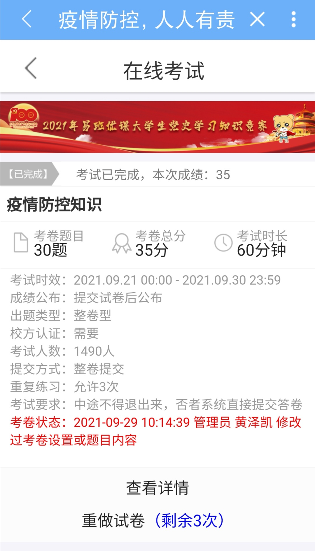 為進一步增強我校學生的疫情防控意識,提高自我保護能力,9月23日至10月5日,我校易班學生工作站開展了“全民抗疫,‘易’路同行”防疫安全知識競賽活動。