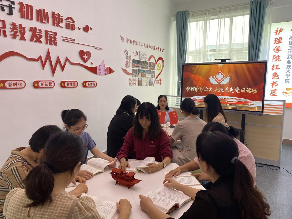 吳美丹、洪霞兩位“雙帶頭人”黨支部書記帶頭拍攝并制作了《獻(xiàn)禮建黨百年 護(hù)理深情演繹》系列微黨課有聲讀物慶祝工作室的落成,并希望以此激發(fā)黨員教師自主融入黨性教育的積極性和主動性,激發(fā)黨性教育活力,持續(xù)開發(fā)黨性教育與職業(yè)教育融合的院本教材。