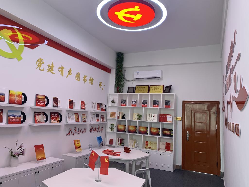 學(xué)習(xí)區(qū)設(shè)置有聲黨建圖書館,它由經(jīng)典黨建讀物、黨建有聲讀物組成,讀者掃碼即可自主選擇學(xué)習(xí)內(nèi)容。