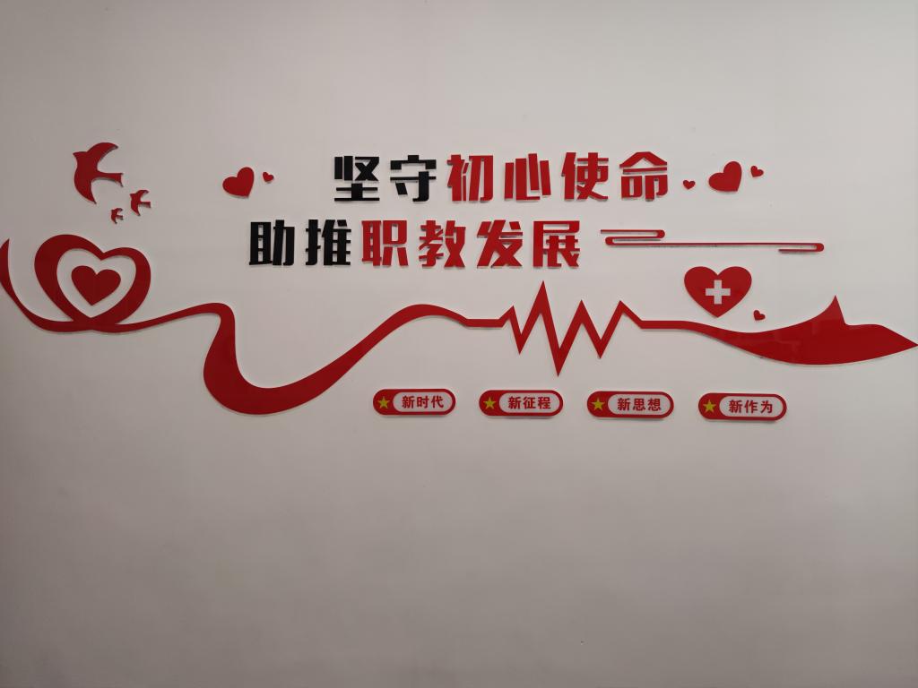 一抹跳動的心電圖圖譜和一顆畫有紅十字的紅色的醫(yī)心,象征全體師生黨員 “醫(yī)心向黨、堅守初心、勇?lián)姑?、人民至上、生命至上、救死扶傷、精益求精、追求卓越、甘于奉獻(xiàn)、大愛無疆的醫(yī)護(hù)職教精神”,站在學(xué)校雙高校建設(shè)的新時代,開啟新征程,用新思想武裝頭腦,勇?lián)伦鳛椤?/p>