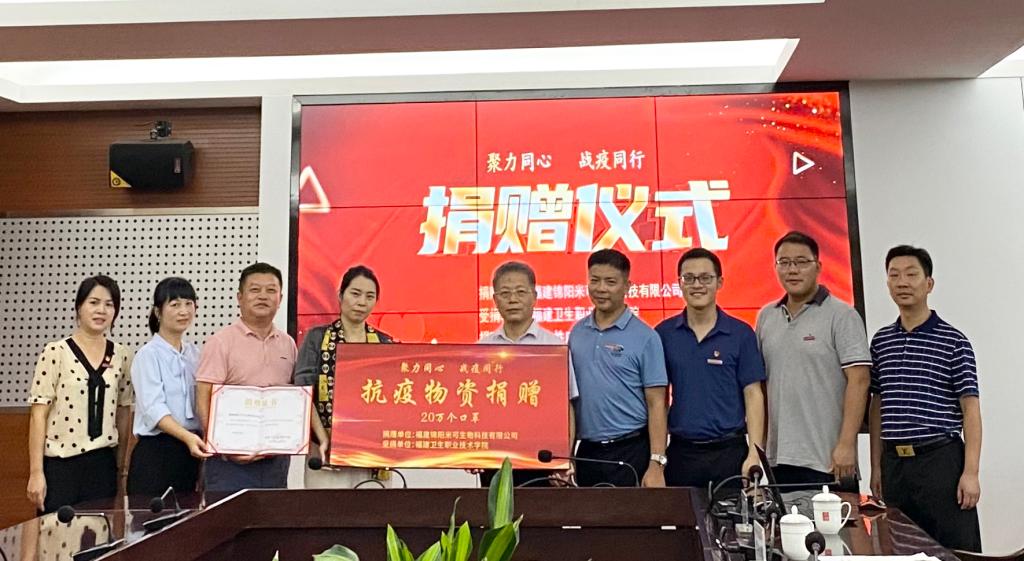 福建錦陽(yáng)米可生物科技有限公司經(jīng)營(yíng)范圍包括工程和技術(shù)研究和試驗(yàn)發(fā)展、新材料技術(shù)研發(fā)、生物基材料技術(shù)研發(fā)、醫(yī)護(hù)人員防護(hù)用品生產(chǎn)等,公司熱心公益、慈善事業(yè)。此次愛(ài)心捐贈(zèng),為學(xué)校疫情防控常態(tài)化工作保駕護(hù)航,以實(shí)際行動(dòng)履行社會(huì)責(zé)任,彰顯企業(yè)愛(ài)心,弘揚(yáng)社會(huì)正能量。