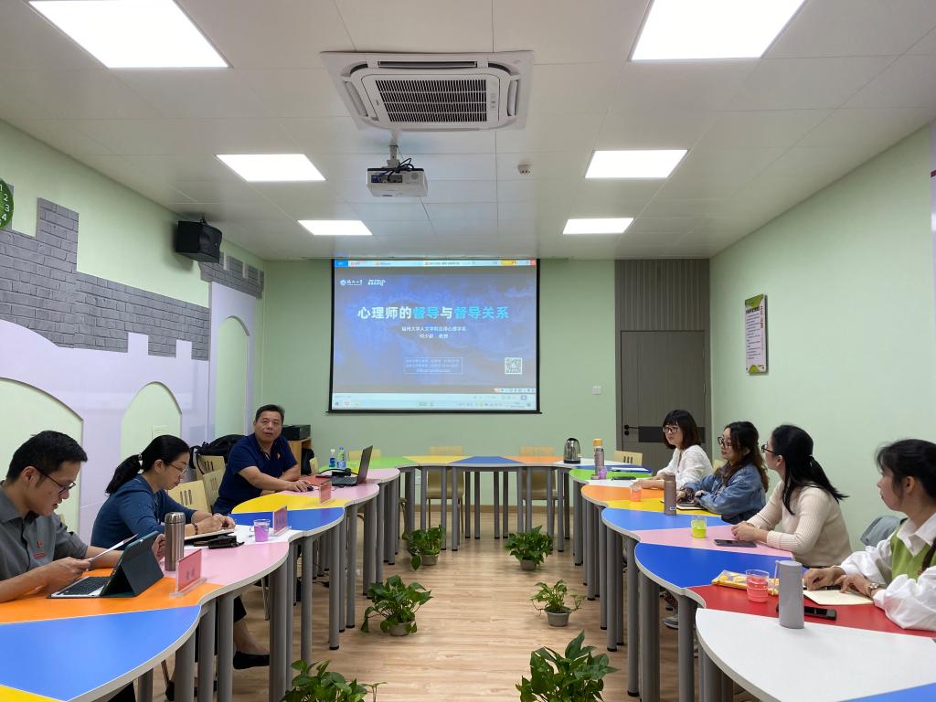 本次督導(dǎo)在心理健康教育中心團(tuán)體心理輔導(dǎo)室舉行。何少穎教授為全體老師帶來題為《心理師的督導(dǎo)與督導(dǎo)關(guān)系》的講座,分享了督導(dǎo)的定義、目的、工作焦點(diǎn)以及在具體咨詢工作中的應(yīng)用等內(nèi)容。在場的心理咨詢師也與何少敏展開了熱烈討論,共同探討如何有效地開展心理咨詢工作,精進(jìn)咨詢技能,從而更好地為全體師生提供心理服務(wù)。