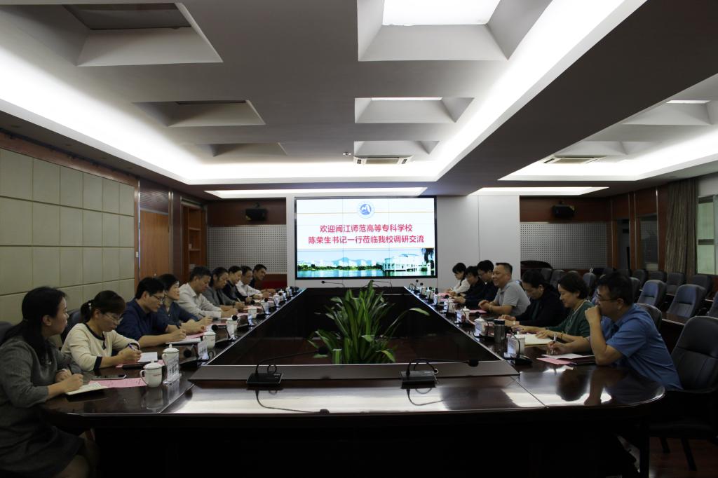 10月28日下午,閩江師范高等??茖W(xué)校黨委書記陳榮生一行9人來訪我校,考察調(diào)研醫(yī)護(hù)類專業(yè)及實(shí)訓(xùn)基地建設(shè)等情況。我校黨委書記曾武祈、副校長鄭翠紅在行政樓四樓會議室接待客人并舉行座談,黨政辦公室、教務(wù)處以及相關(guān)院系負(fù)責(zé)人參加座談會。