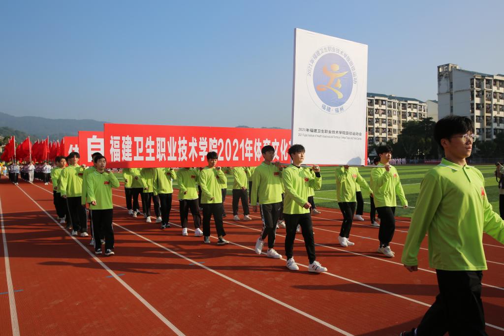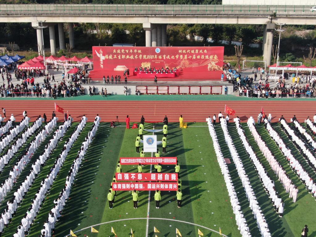 隨后,曾武祈宣布:福建衛(wèi)生職業(yè)技術(shù)學(xué)院2021年體育文化節(jié)暨第十屆田徑運(yùn)動(dòng)會(huì)開(kāi)幕!