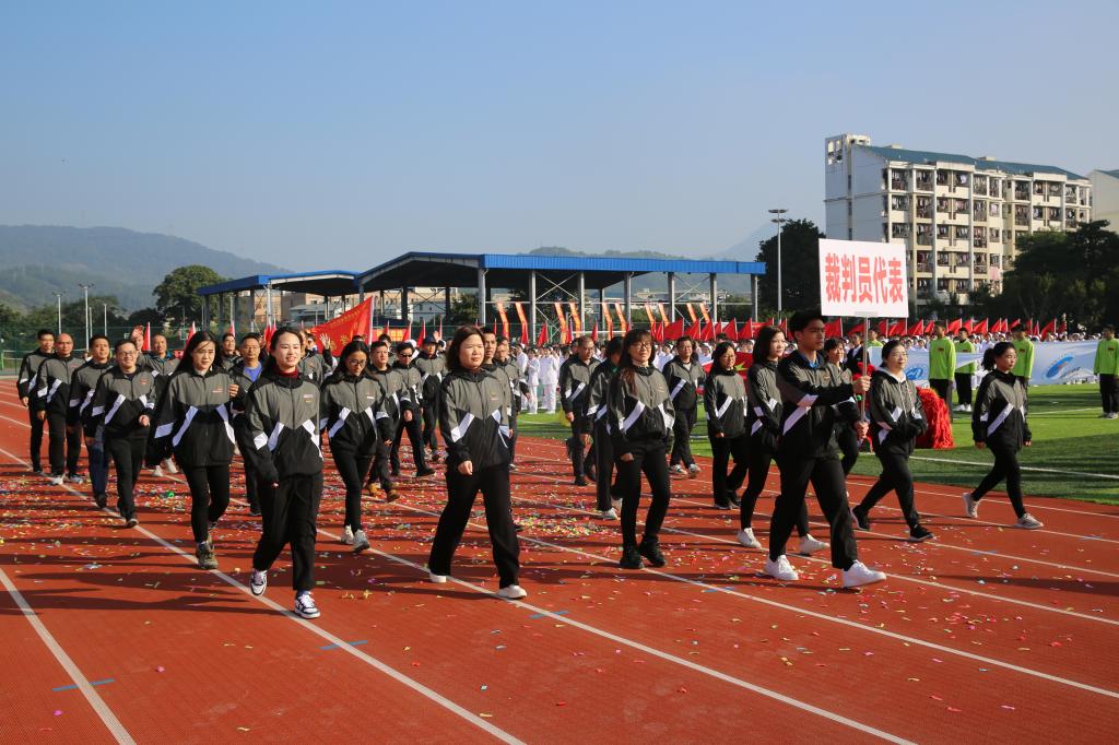 黨委書(shū)記曾武祈致開(kāi)幕辭。他首先對(duì)本屆運(yùn)動(dòng)會(huì)的勝利召開(kāi)表示熱烈祝賀,向全體體育運(yùn)動(dòng)委員會(huì)成員、裁判員、教練員、運(yùn)動(dòng)員和工作人員表示衷心感謝。他指出,學(xué)校歷來(lái)高度重視體育工作,將體育作為“五育并舉”的重要一環(huán),形成了“以體育智”“以體育心”“以體育人”的體育文化氛圍。他希望,全校師生員工能在運(yùn)動(dòng)會(huì)中展示出閩衛(wèi)院人的精神風(fēng)采,凝聚出更強(qiáng)大的精神力量,推進(jìn)學(xué)校體育工作再上新臺(tái)階。