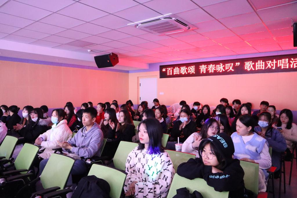 為展現(xiàn)我校大學生奮發(fā)向上、朝氣蓬勃的精神風貌,豐富拓展美育實踐課程,培養(yǎng)學生建立正確的審美觀、高尚的道德情操,在實踐中創(chuàng)造美的人文素養(yǎng),2021年12月2日,由我校人文教學部美育教研室主辦,麥克風俱樂部承辦的“百曲歌頌·青春詠嘆”歌曲對唱活動在“青年之家”順利舉行。
