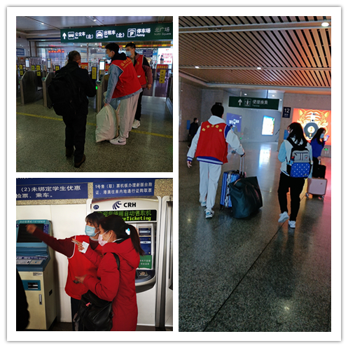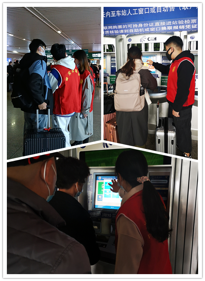 醫(yī)學(xué)院黨員志愿者們耐心地回答每一位旅客的問題。