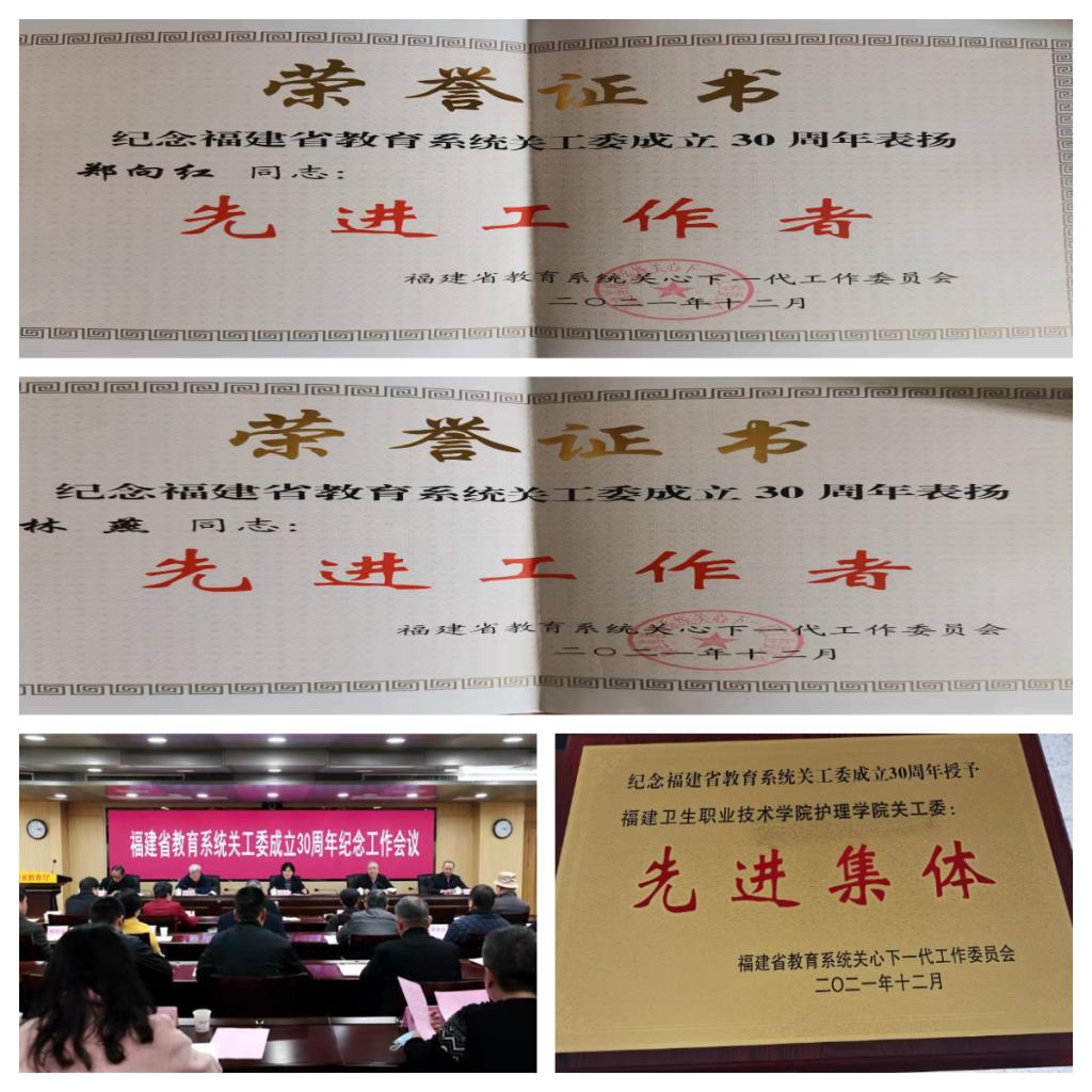 2021年,適逢全國、全省教育系統(tǒng)關(guān)工委成立30周年,也是我校關(guān)工委育人成效收獲肯定的一年,先后榮獲全國教育系統(tǒng)和福建省教育系統(tǒng)關(guān)心下一代工作委員會的多項表彰。2022年,是黨的二十大召開之年、“十四五”建設(shè)邁進之年,我校關(guān)工委工作將繼續(xù)深入學(xué)習(xí)貫徹習(xí)近平新時代中國特色社會主義思想,堅持立德樹人根本任務(wù),圍繞堅定青年學(xué)子理想信念、培育和踐行社會主義核心價值觀等主題,推進“五好”關(guān)工委創(chuàng)建,助力培養(yǎng)“業(yè)精德誠”的高素質(zhì)技能型健康服務(wù)產(chǎn)業(yè)人才,為“健康福建”的建設(shè)作出新貢獻。