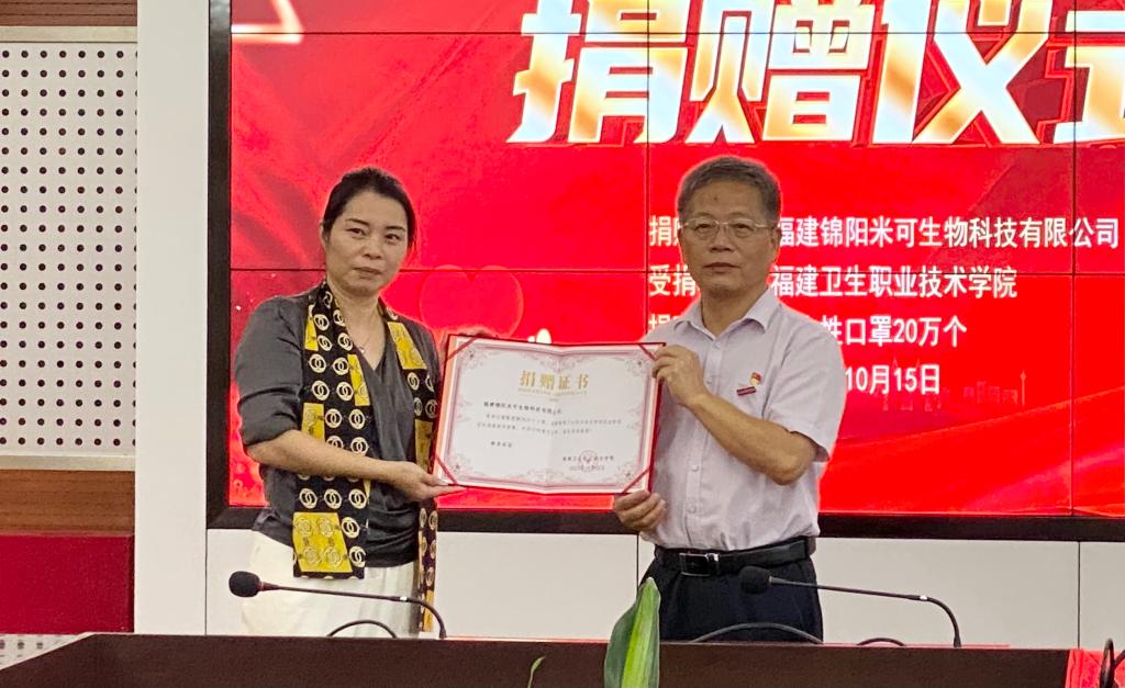 “目前,福建疫情防控形勢嚴(yán)峻復(fù)雜,學(xué)校早已開學(xué),想必也急需口罩物資,最近我們公司剛好在趕制口罩,如果學(xué)校有需要的話,我再捐贈一些,希望為學(xué)校防疫工作獻(xiàn)出自己的一份力量,相信我們一定能早日戰(zhàn)勝疫情!”福建錦陽米可生物科技有限公司執(zhí)行董事陳建慧說。