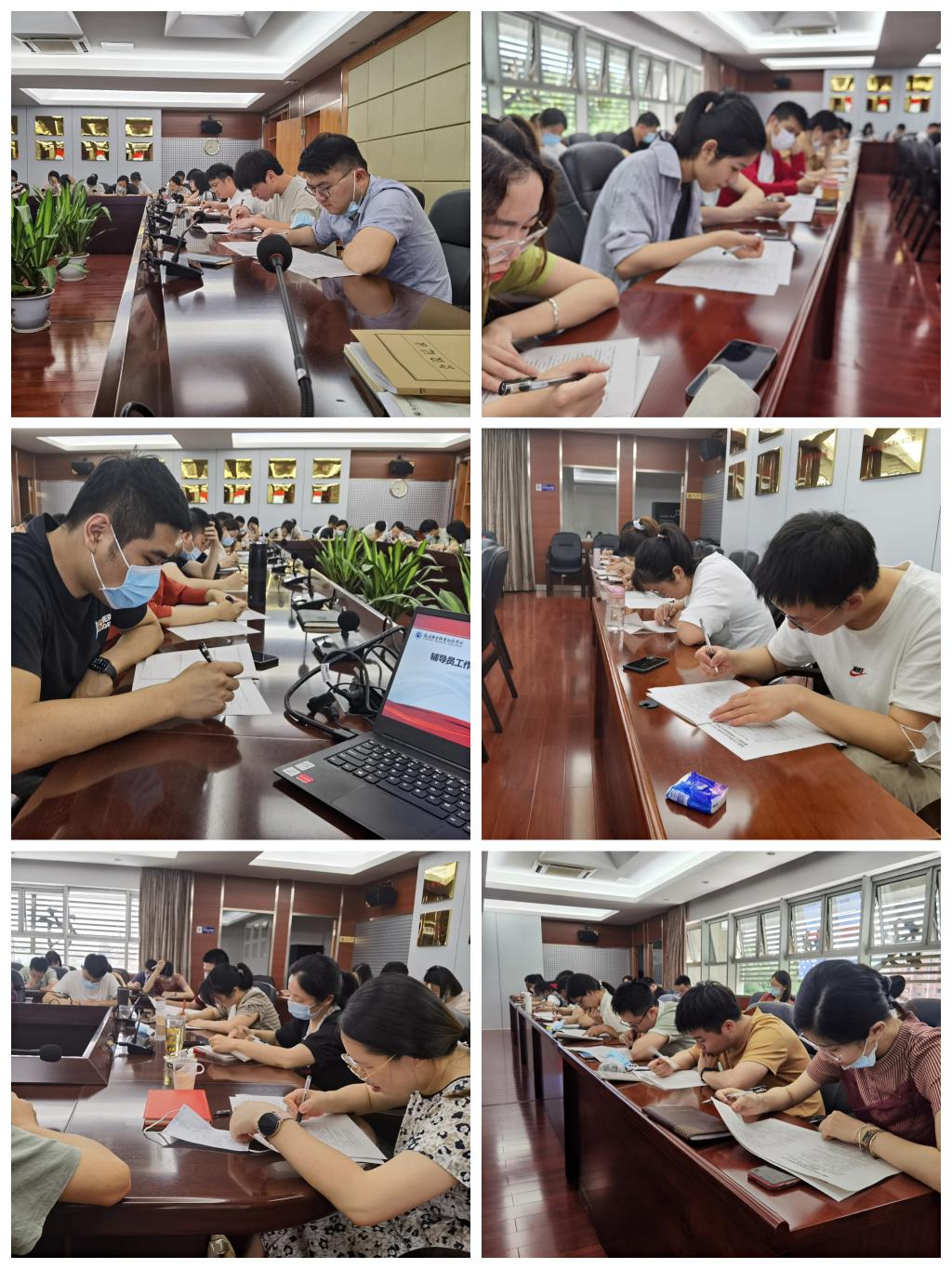 為切實(shí)提高講座的實(shí)效性,會(huì)前,學(xué)生工作部組織全體專職輔導(dǎo)員進(jìn)行基礎(chǔ)業(yè)務(wù)知識(shí)測(cè)試。本次測(cè)試作為二級(jí)院系選拔的重要環(huán)節(jié),采用閉卷的方式,內(nèi)容主要涵蓋了思想政治教育理論知識(shí)、黨史知識(shí)、輔導(dǎo)員業(yè)務(wù)素質(zhì)、心理健康教育知識(shí)、疫情防控等內(nèi)容,包括單選題、不定項(xiàng)選題、簡(jiǎn)答題、對(duì)策分析題,旨在全面考察輔導(dǎo)員的業(yè)務(wù)水平和綜合素質(zhì)。學(xué)生工作部安排專人監(jiān)考,副校長(zhǎng)黃銘珊來(lái)到測(cè)試現(xiàn)場(chǎng)巡考。