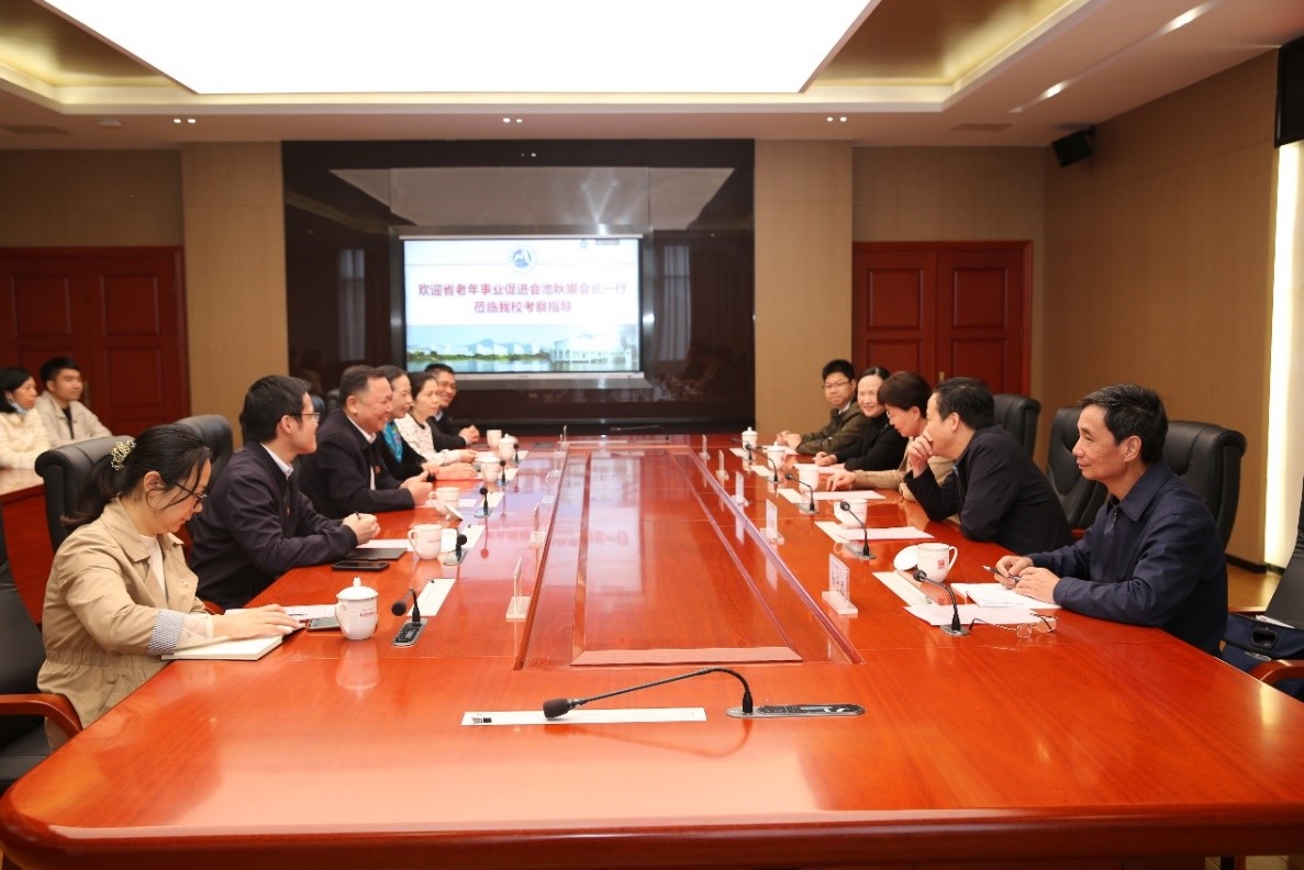 2022年5月16日下午,福建省老年事業(yè)促進(jìn)會會長池秋娜、福建省衛(wèi)生健康委員會一級巡視員陳厚鑾、福建省老年事業(yè)促進(jìn)會副會長何曉清、福建省老年事業(yè)基金會監(jiān)事長暢守忠等一行5人蒞臨我校調(diào)研。