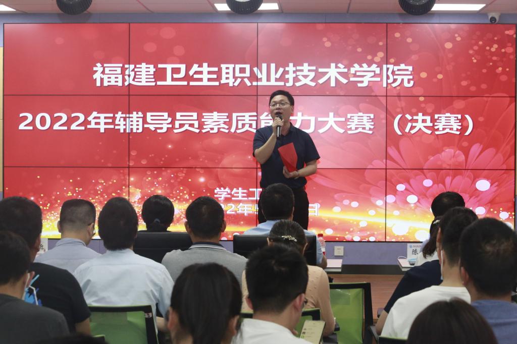 5月31日上午,福建衛(wèi)生職業(yè)技術(shù)學(xué)院2022年輔導(dǎo)員素質(zhì)能力大賽決賽在我校青年之家多功能廳成功舉辦。大賽邀請(qǐng)福建信息職業(yè)技術(shù)學(xué)院黨委副書記王興中、福建農(nóng)業(yè)職業(yè)技術(shù)學(xué)院學(xué)生工作部部長(zhǎng)陳曉波、福建師范大學(xué)法學(xué)院黨委副書記周延鋒、我校副校長(zhǎng)黃銘珊、宣傳部部長(zhǎng)宋維擔(dān)任評(píng)委,校黨委書記曾武祈,學(xué)生工作部、團(tuán)委、馬克思主義學(xué)院等部門負(fù)責(zé)人,各院系黨總支書記、副書記及全體專職輔導(dǎo)員觀摩了比賽。